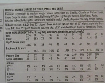 Simplicity 1431 Pattern For Misses Dress Tunic Pants Etsy Ireland